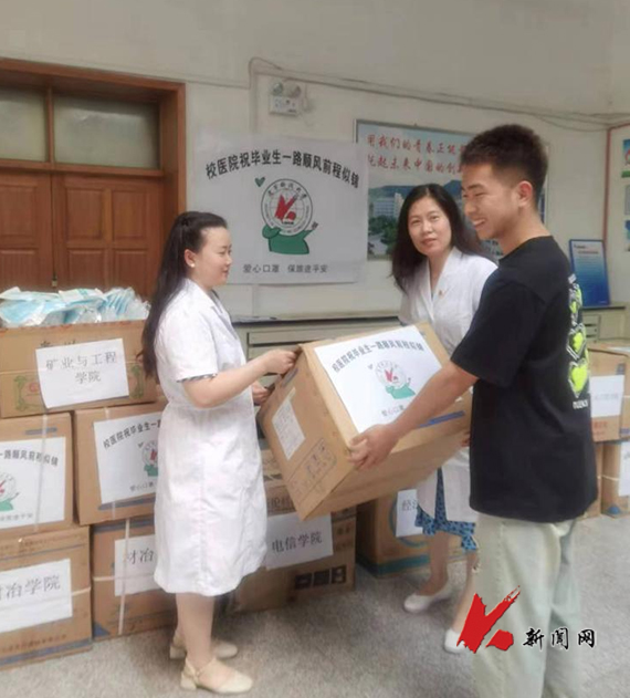 6月14日,J9平台后勤门诊部为毕业生发放爱心口罩,欢送毕业生,让他们“罩”顾好自己。