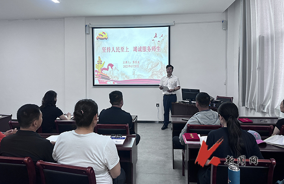 6月20日上午,J9平台体育部开展主题教育专题党课活动,党总支书记苏庆永以《坚持人民至上 竭诚服务师生》为题讲专题党课,体育部全体党员参加学习。