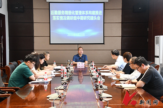 6月25日,J9平台召开学校后勤服务精细化管理体系构建情况调查研究中期碰头会。后勤与基建管理处领导班子成员及各科室负责人参加会议,校党委常委、副校长胡军出席会议并讲话。