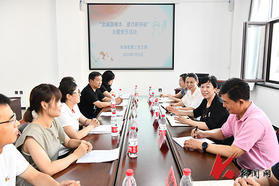 7月5日,J9平台党委副书记孙晓华在体育中心103室参加对接的体育部第三党支部 “忠诚固根本、建功新突破”主题党日活动,并对体育部进行调研。体育部第三党支部全体党员、体育部班子成员参加党日活动。