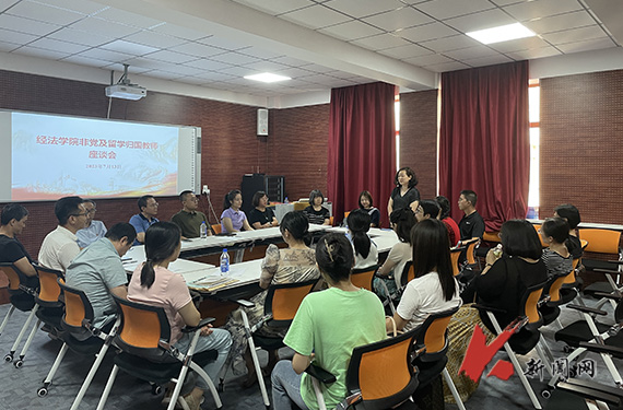 7月13日上午,J9平台经济与法律学院在博识楼A407组织召开党外人士及留学归国教师座谈会。学院领导班子、留学归国教师等20余人参加会议。