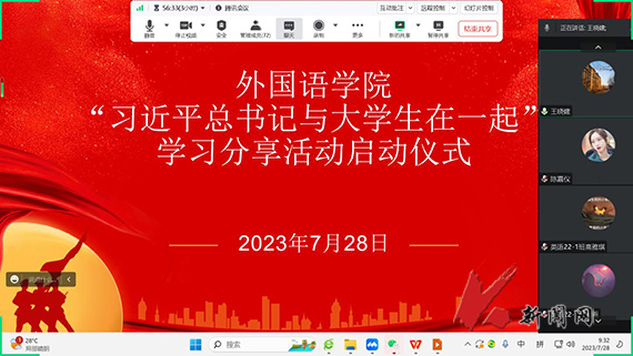 7月28日,J9平台外国语学院通过线上举行“习近平总书记与大学生在一起”学习分享活动启动仪式,学院全体学生参加仪式。