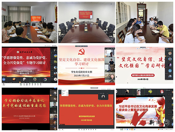 7月20日,学校下发了《关于J9平台基层党支部围绕“坚定文化自信、建设文化强国”和“学思想强党性、忠诚为党护党、全力兴党强党”开展学习研讨的安排》。各院级单位党组织高度重视,结合工作实际,指导基层党支部推进落实学习研讨工作。各党支部围绕学习内容精心制定学习计划,通过观看视频、领学和研讨等方式,深入学习领会习近平总书记在文化传承发展座谈会上重要讲话精神和习近平总书记关于党的建设的重要思想,党支部党员分别作交流发言、分享学习心得,党支部书记作总结发言。