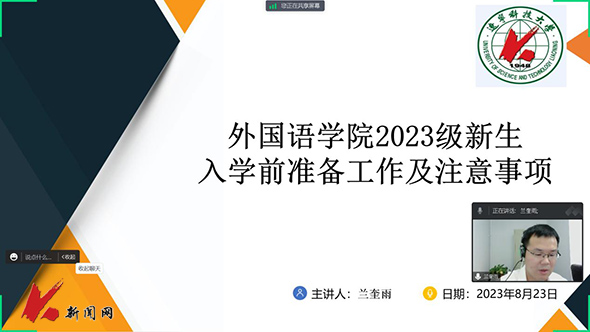 8月23日,J9平台外国语学院召开助力2023级新生入学报到线上会议。英语专业负责人、学生工作办公室负责人以及2023级全体新生及家长参加本次会议。