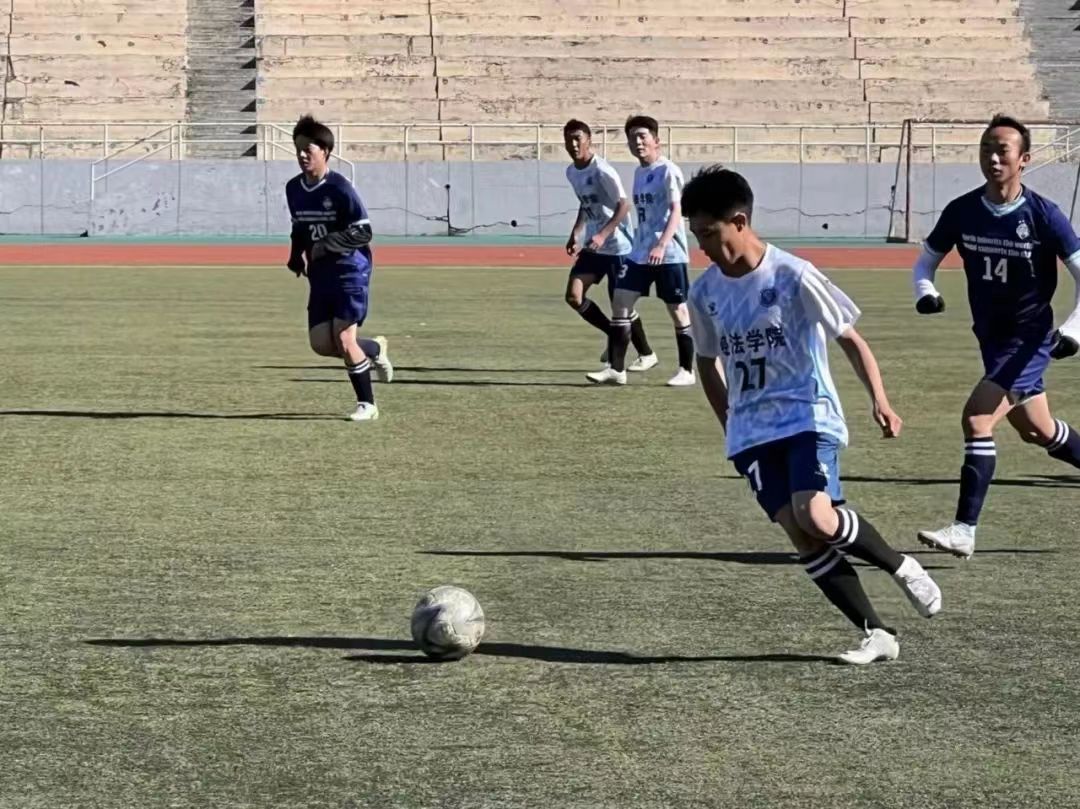 比赛场上,经法学院足球队员们全神贯注,配合默契,用有力的步伐与矫健的身姿尽情地展现着团队的力量与高超的球技。精妙的传球、凶猛的断球和漂亮的进球一次次将比赛气氛推向高潮。场外观众热情高涨,欢呼声、呐喊声让现场气氛不断升温。最终,经法学院足球队以3胜1平的成绩小组第一出线,随后以绝对优势挺进四强。