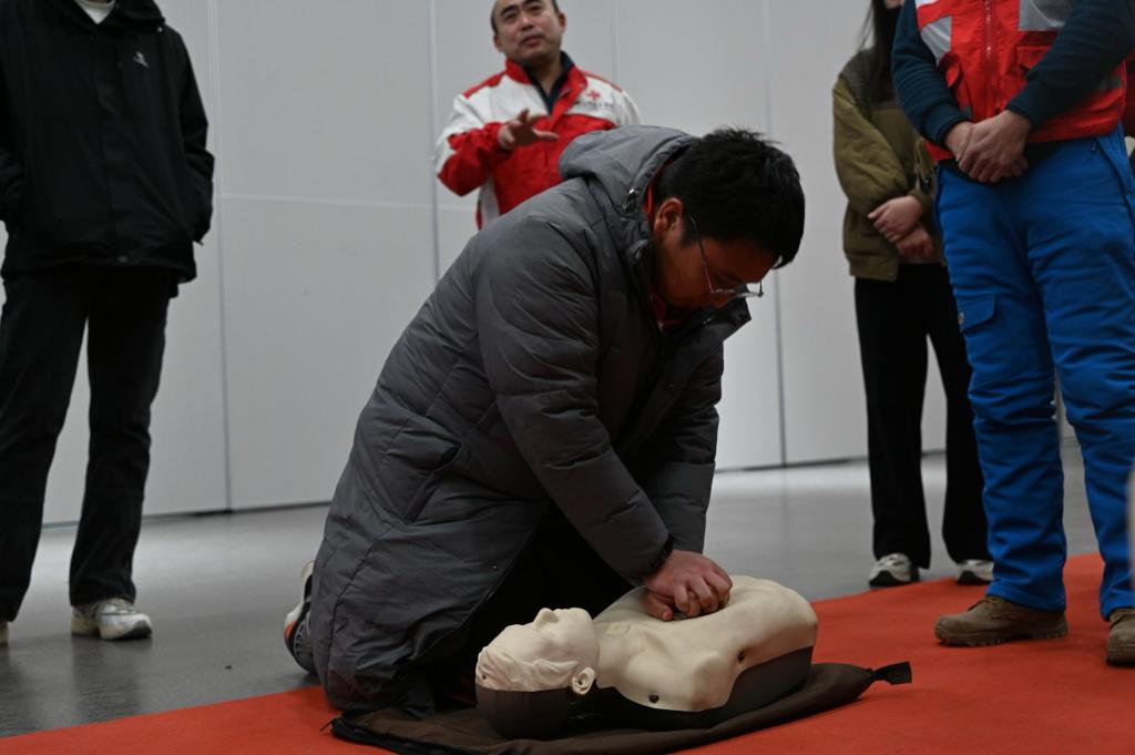 在演练过程中,老师以师徒制分组方式安排学生轮流上阵展开演练,“不要靠单手手臂力量去做心肺复苏,要充分利用全身力量去按压”“每分钟按压100到120下,深度5到6公分”……培训老师对同学们进行详细指导,及时纠正不当操作,同时耐心且细致地解答了同学们提出的问题,让大家受益匪浅。轻松愉悦的学习氛围令学生们的学习热情高涨,在寓教于乐中使学生亲身体会到急救知识和技能在生活中的重要作用,同学们纷纷表示在意外伤害发生时,将运用所学急救知识积极地伸出援助之手,以最大限度为他人争取生存机会,为自己也为他人的生命安全保驾护航。
