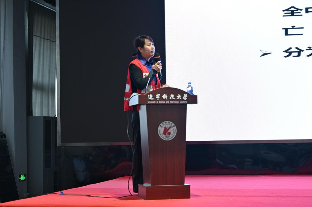 活动中,学院团委副书记张鹏飞对大家的到来表示热烈欢迎,随后,校医院院长程瑶向同学们强调了掌握急救技能的重要性。“当意外发生时,掌握必备的急救技能,关键时刻能救人一命,比如……”鞍山市红十字会应急救护讲师王影以生活中常见的紧急突发情况作为切入点,结合生动的PPT内容为大家深入浅出地讲解了创伤救护、气道异物梗阻、心肺复苏、自动体外除颤器(AED)等专业知识,并利用道具模特展开现场示范教学,向同学们讲解心肺复苏、AED的使用方法、气道梗阻救护等多个实用操作技能。