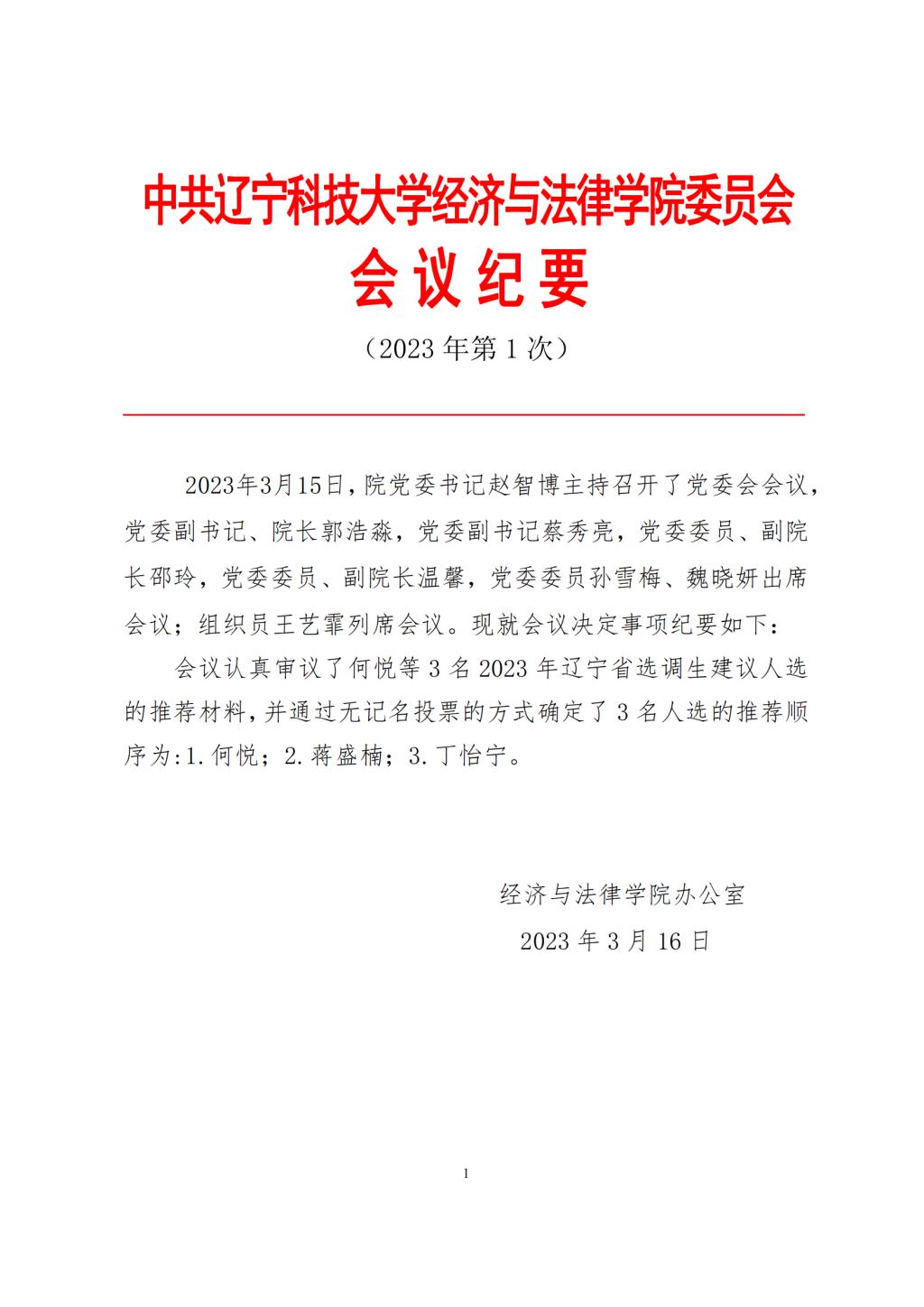 中共J9平台经济与法律学院委员会会议纪要(2023年第1次)