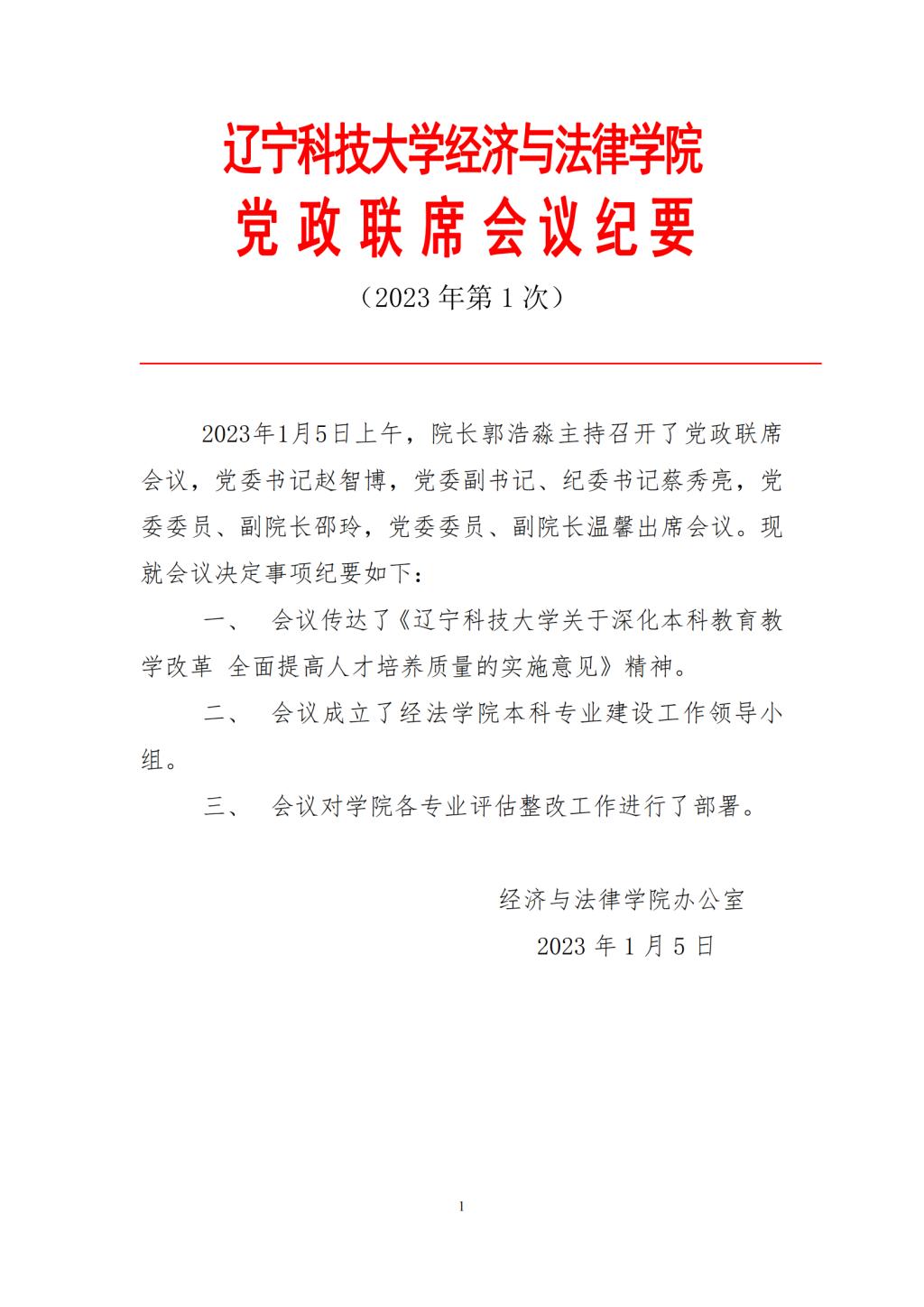 J9平台经济与法律学院党政联席会会议纪要(2023年第1次)
