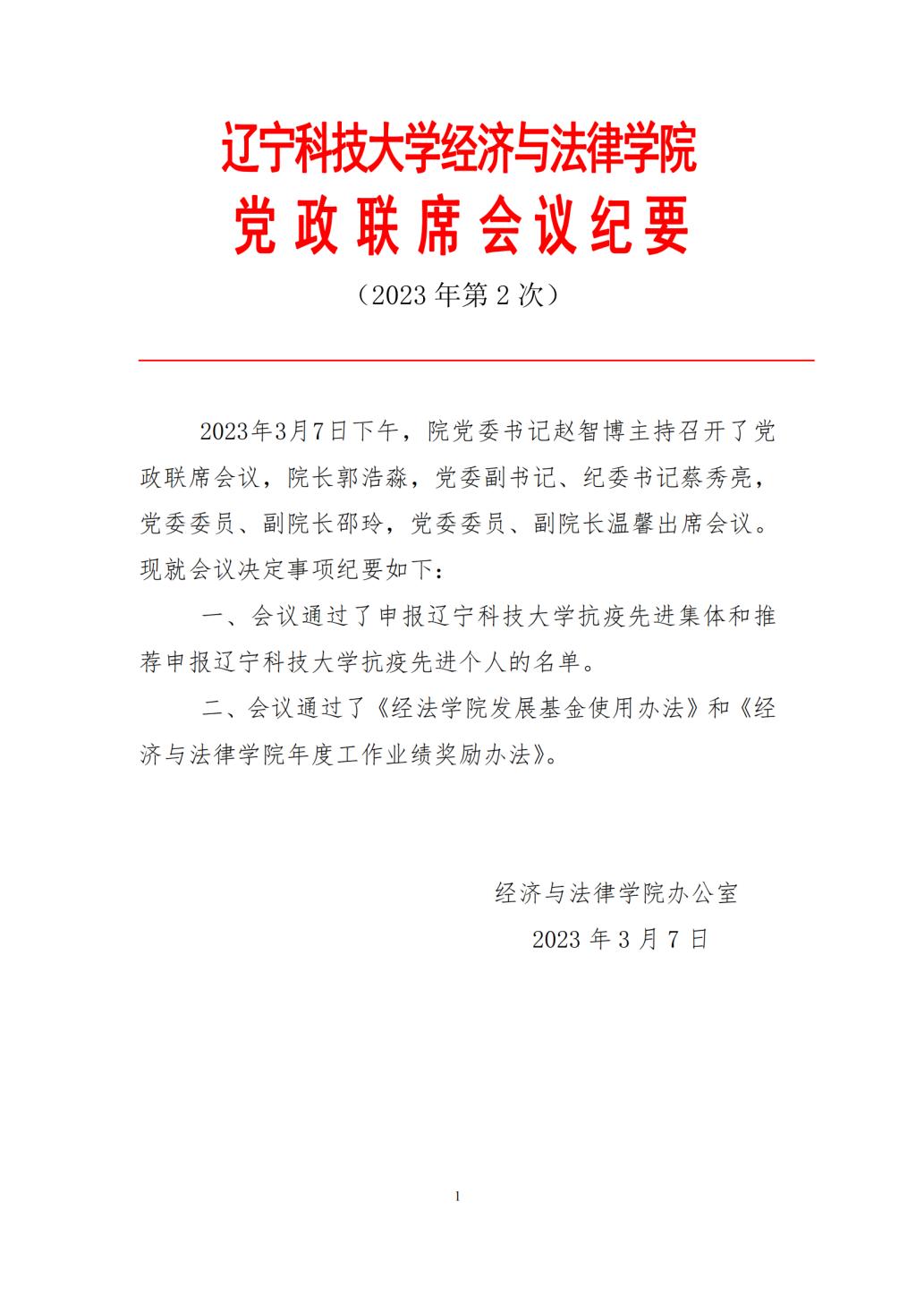 J9平台经济与法律学院党政联席会会议纪要(2023年第2次)