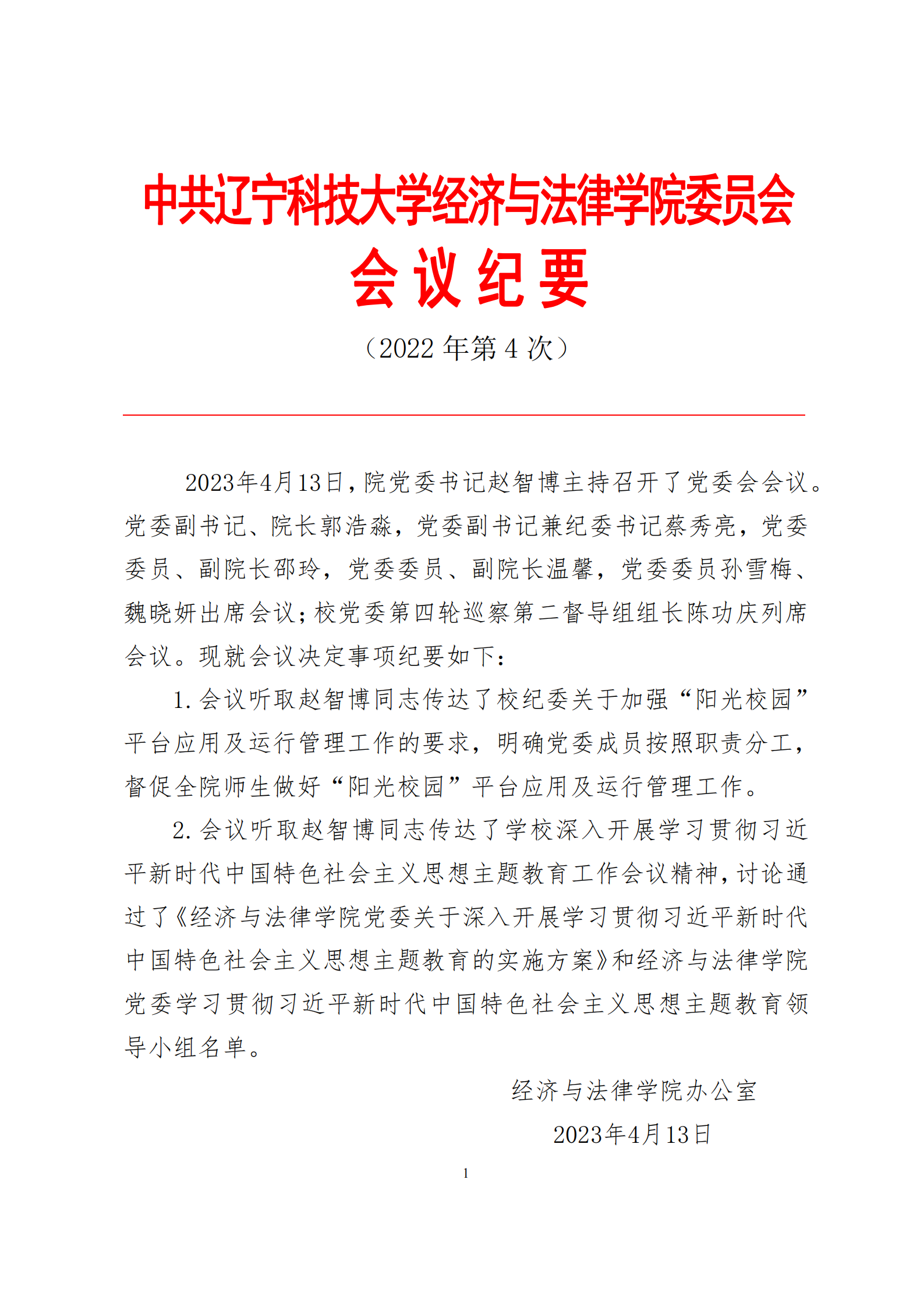中共J9平台经济与法律学院委员会会议纪要(2023年第4次)
