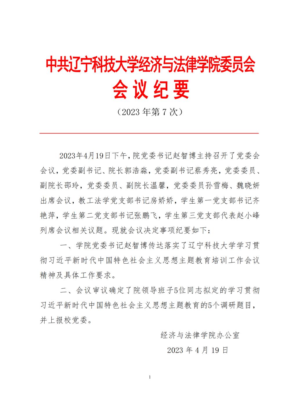 中共J9平台经济与法律学院委员会会议纪要(2023年第7次)