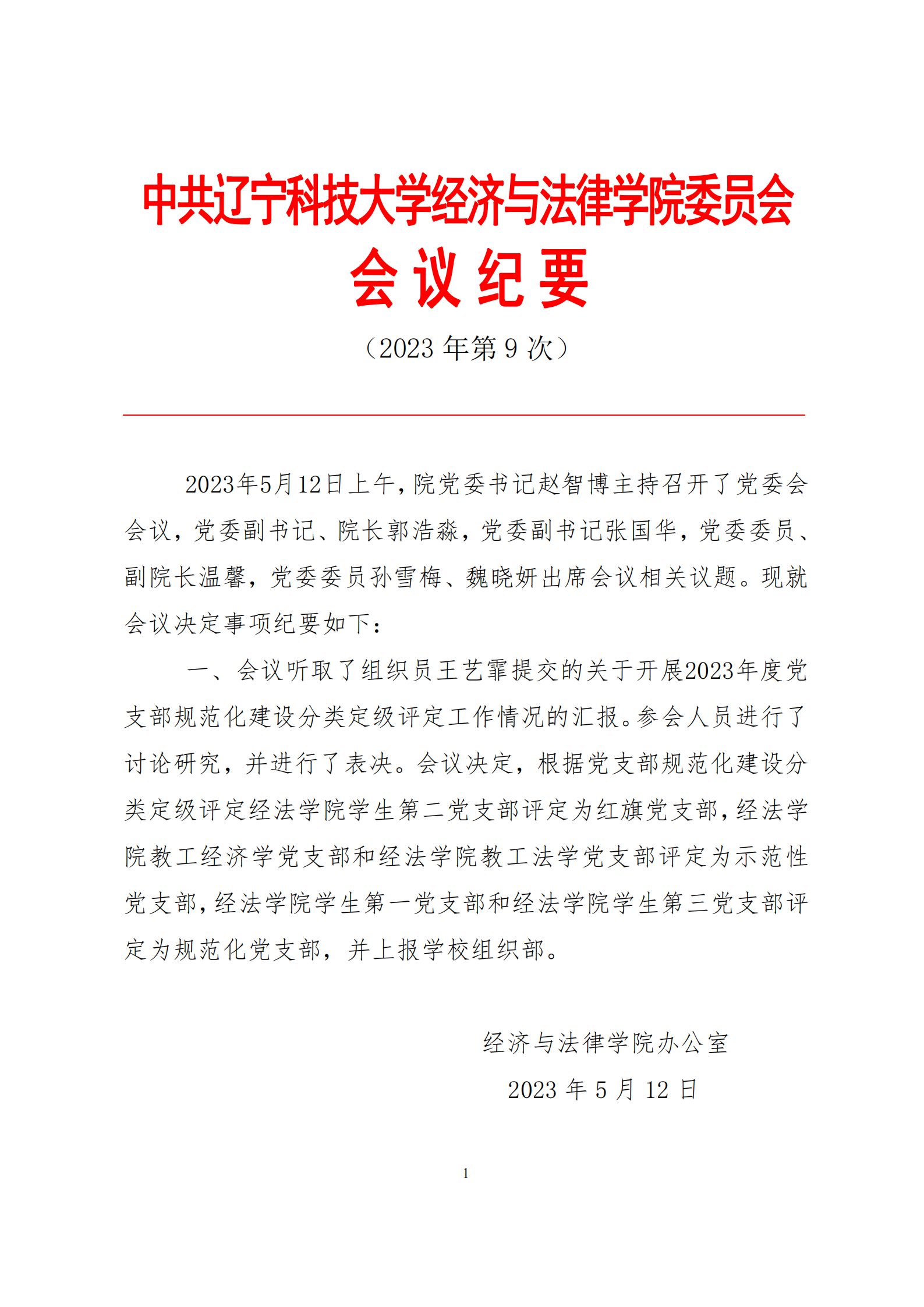 中共J9平台经济与法律学院委员会会议纪要(2023年第9次)