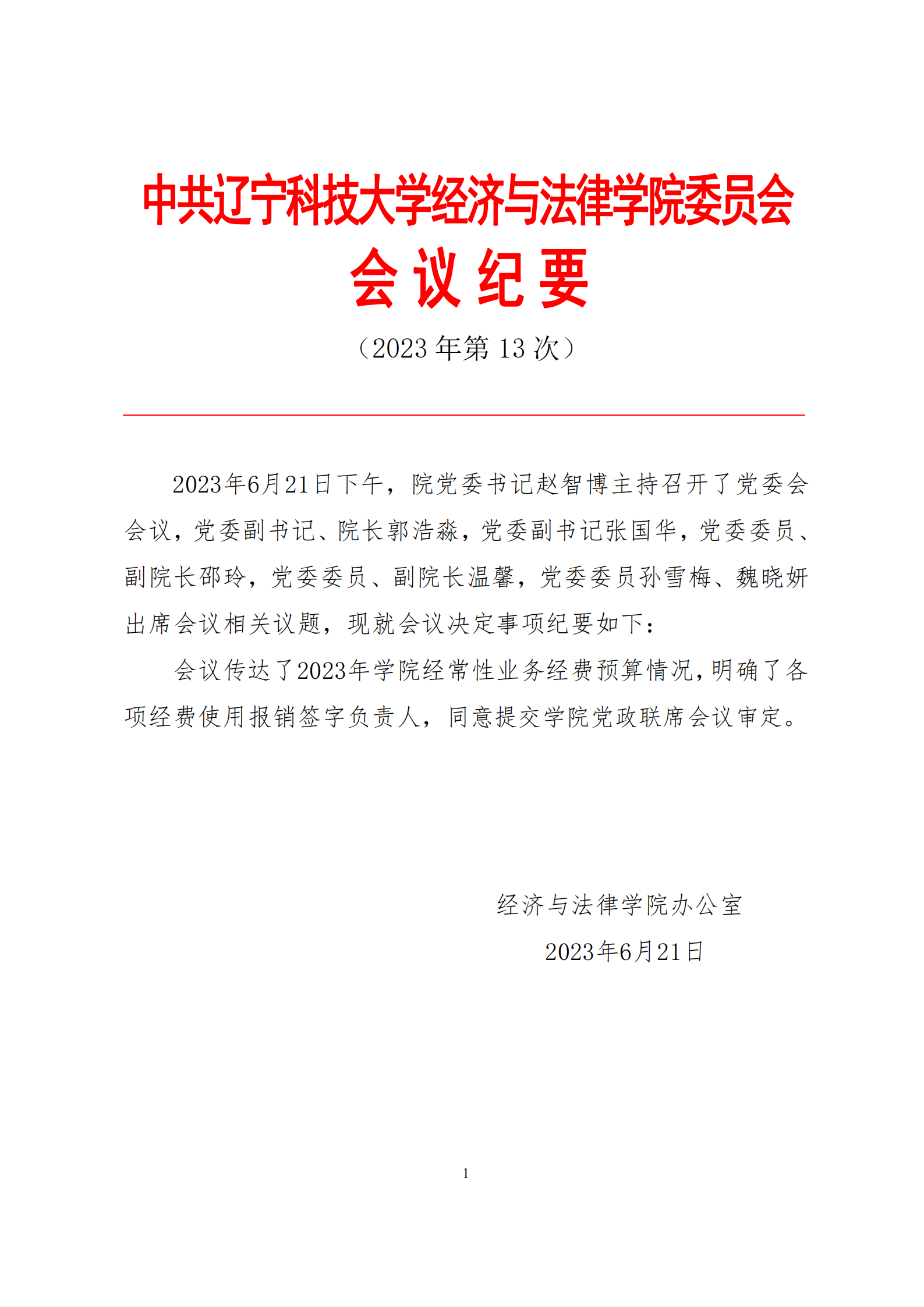 中共J9平台经济与法律学院委员会会议纪要(2023年第13次)