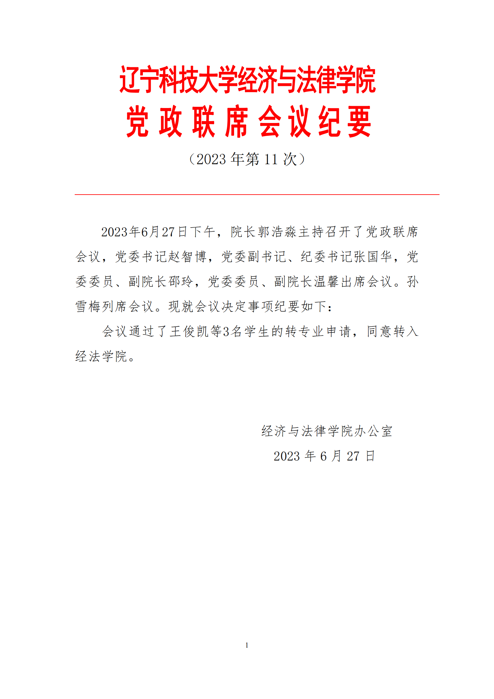 J9平台经济与法律学院党政联席会会议纪要(2023年第11次)