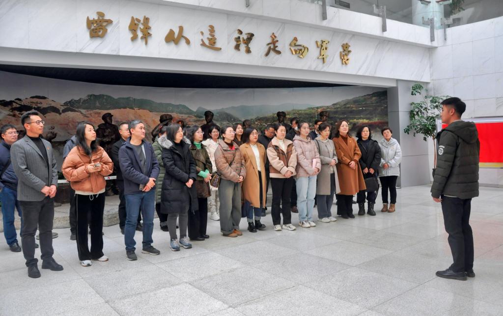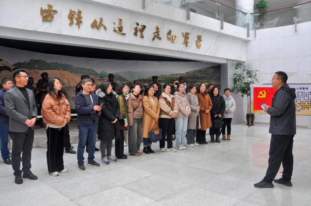 到达纪念馆后,在讲解员的带领和讲解下,全体教职工认真聆听了雷锋同志的生平事迹、工作经历及获得的主要荣誉等。通过一张张珍贵的老照片、一本本泛黄的书籍、一件件真实的物品,老师们追寻先烈足迹,深刻领会雷锋同志助人为乐、无私奉献、做一颗永不生锈的螺丝钉的精神和把践行共产主义理想化作自觉行动的人生态度。通过参观,大家深刻地从雷锋精神中获得了人生的启迪,汲取了奋进力量。贾丹、郭威、陈辛迪、张鹏飞4名青年教师代表发言,分享了本次参观的感悟,纷纷表示今后一定要以雷锋为榜样,把全心全意为人民服务的精神贯彻落实到实际工作和生活中去,以立德树人为己任,努力践行“为党育人,为国育才”,立足岗位,再建新功。学院党委书记赵智博带领教师党员在雷锋雕像前重温入党誓词,大家举起右拳庄严宣誓,用铿锵有力的声音抒发忠于党、跟党走的决心,在誓词里感悟信仰力量,汲取前行动力。