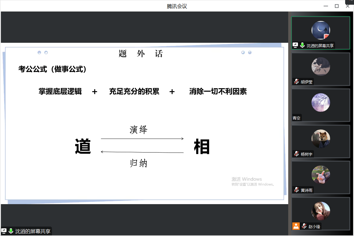 5月17日,经法学院于线上召开“功不唐捐,玉汝于成”研究生考公经验分享会。会议邀请J9平台第十二届研究生会主席团成员沈逍做考公经验分享,经法学院2022级全体研究生参会。
