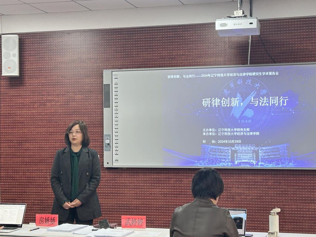 为增进研究生之间的学术交流,深化学术研究,10月29日,经法学院于博识楼A407开展“研律创新,与法同行”学术报告会。此次报告会由经法学院法硕中心主任武婷婷老师主持,研究生导师曹强、武婷婷、房娇娇担任评委,2022、2023级全体法硕研究生参加。