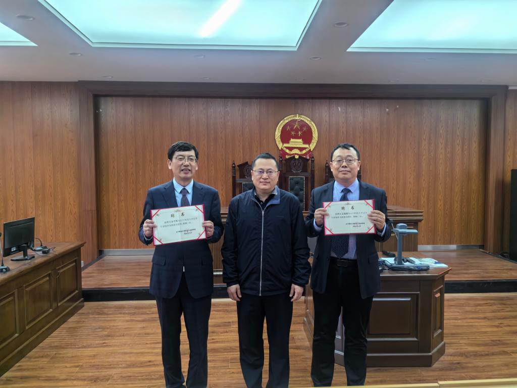 仪式伊始,副院长邵玲代表学院全体师生对王守军主任一行三人的到来表示欢迎,并介绍了经法学院的基本情况,王守军介绍了建纬律师事务所的发展概况,业务优势以及未来发展方向,并表示律所非常欢迎各位同学到这个平台进行学习交流。双方就共建校企合作模式达成共识并签署合作协议。接着,院长郭浩淼为王守军、王俊强两位律师颁任聘书并合影留念。