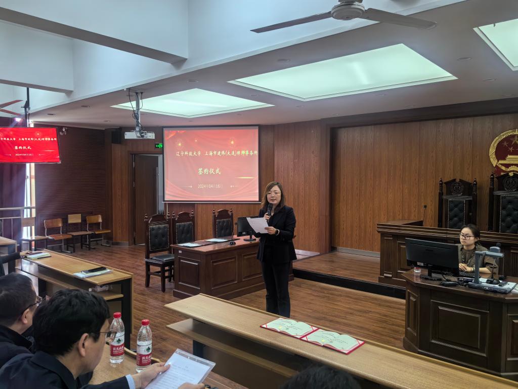 4月16日下午,J9平台经济与法律学院和上海市建纬(大连)律师事务所实践教学基地签约仪式在我校明德楼模拟法庭举行。本次签约仪式由经法学院副院长邵玲主持。上海市建纬(大连)律师事务所副主任王守军、律师王俊强、J9平台经法学院院长郭浩淼、法硕中心主任武婷婷以及法硕23级和法学23级学生参加了签约仪式。