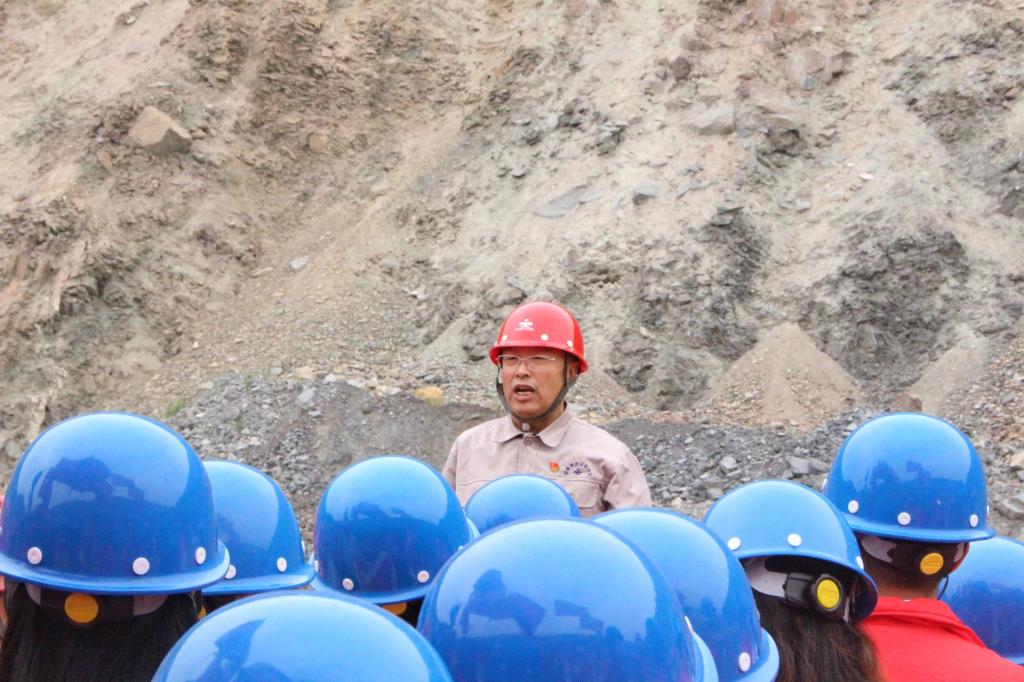 走在郭明义老师已经走了40多年的崎岖颠簸的矿山路上,大家头戴蓝色安全帽,身穿红马甲,在艰苦的环境中感受敬业的实质,在亲切的氛围里体悟精神的力量。尽管道路崎岖,泥土飞溅,但师生们的热情丝毫不减,踏着坚毅的步伐奋勇向前。在活动过程中,郭明义老师结合主题教育为全体师生讲党课,大家认真聆听,再一次深刻领悟了共产党人的责任与担当。在郭明义老师带领下,大家以饱满的热情和昂扬的姿态齐声高唱《学习雷锋好榜样》和《没有共产党就没有新中国》,展现了经法学子良好的精神风貌。
