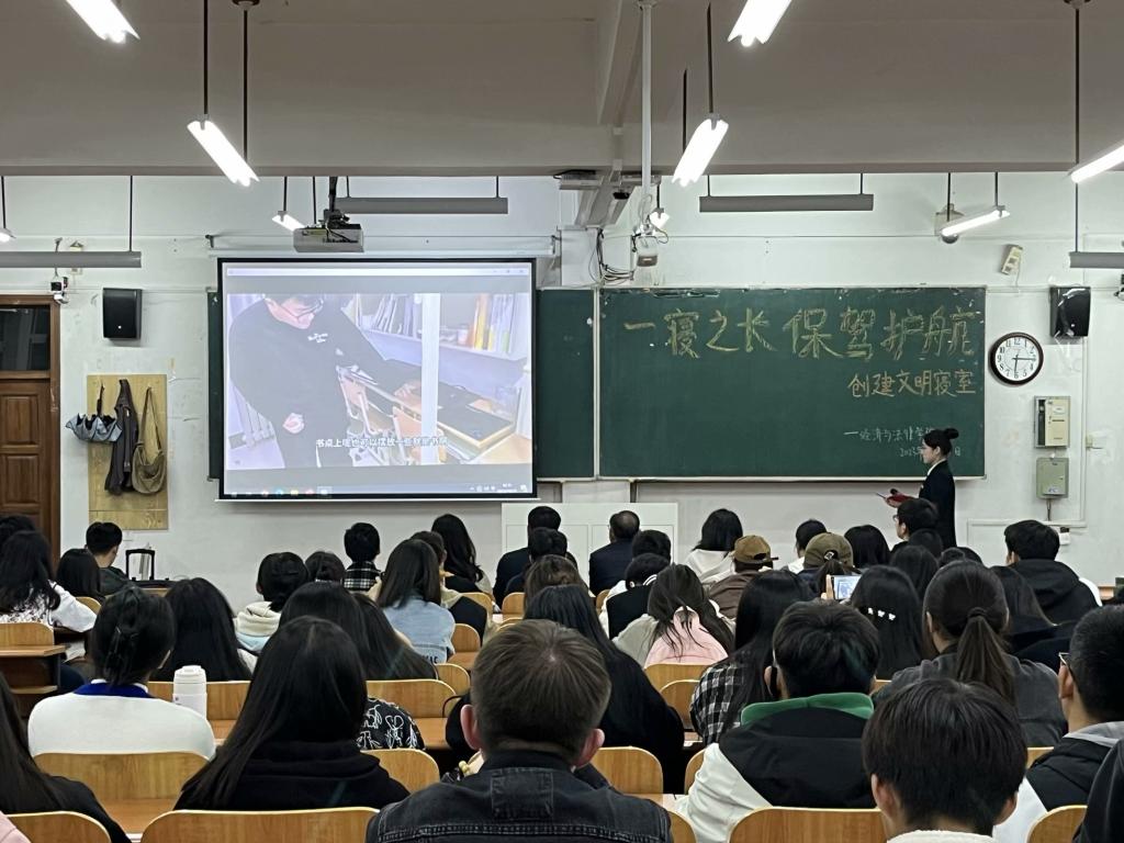 会议伊始,学院学生会生活权益部负责人王瑞强调了本次活动的重要性。接着,他重点围绕寝室安全、寝室卫生以及寝室环境等三方面向大家阐述了文明寝室的内涵,并指出营造和谐整洁的寝室环境对于大家生活和学习的重要性。同时,他强调寝室长一定要叮嘱同学们遵守寝室内张贴的“五个禁止”行为,表示同学们应以严格要求来约束自己,一同为打造文明寝室贡献力量。