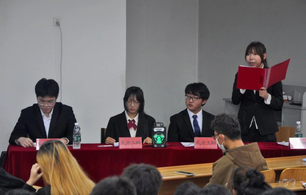 在自由辩论环节,双方辩手轮流陈述自己的观点,双方激烈交锋,辩论现场热闹非凡。在最后的总结陈词阶段,双方辩手引经据典,用灵活的辩论技巧和清晰的辩证思路轻松化解对方的质疑。现场气氛紧张而热烈,场上辩手慷慨陈词,场下观众激情讨论。言语在激烈地交锋,逻辑在猛烈地碰撞。