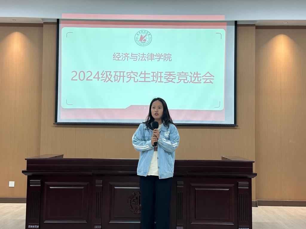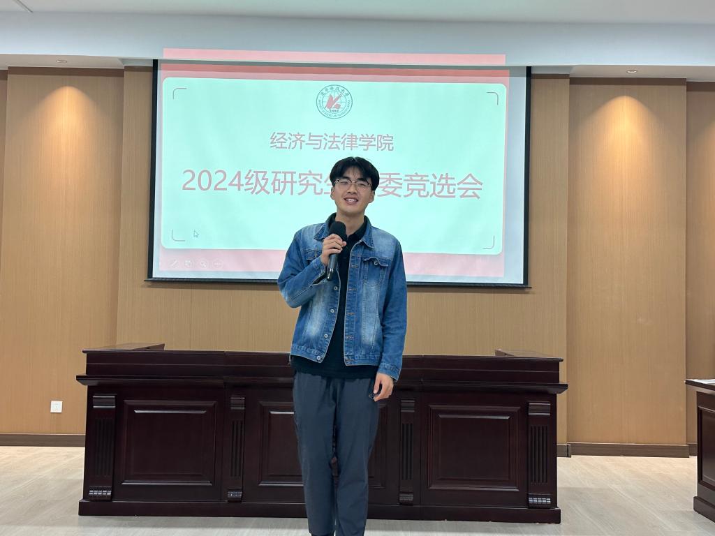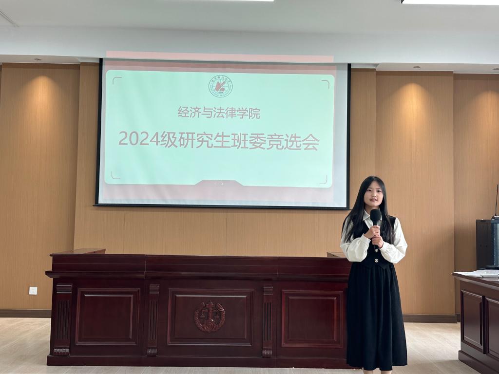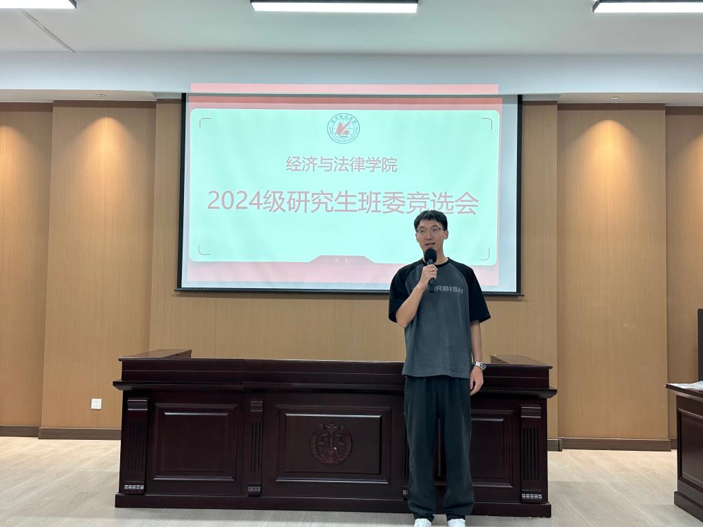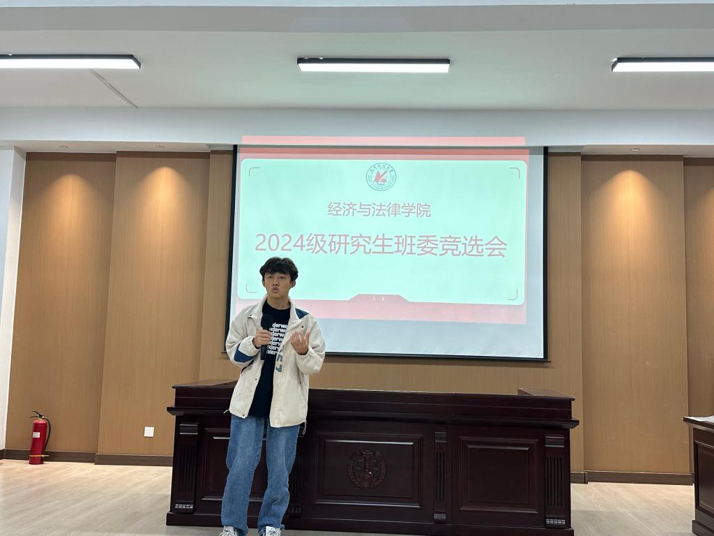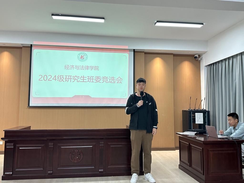 为使班级的各项工作及管理有序进行,让同学们的生活、学习得到更好的维护与保障,9月18日,经法学院2024级研究生于博识楼A402开展班委竞选活动,此次竞选由经法学院研究生会执行主席张淇主持,研究生辅导员贺伟、学院研究生会主席团代表、学办学生助管、学生代表7人组成评委会,2024级全体研究生参会。