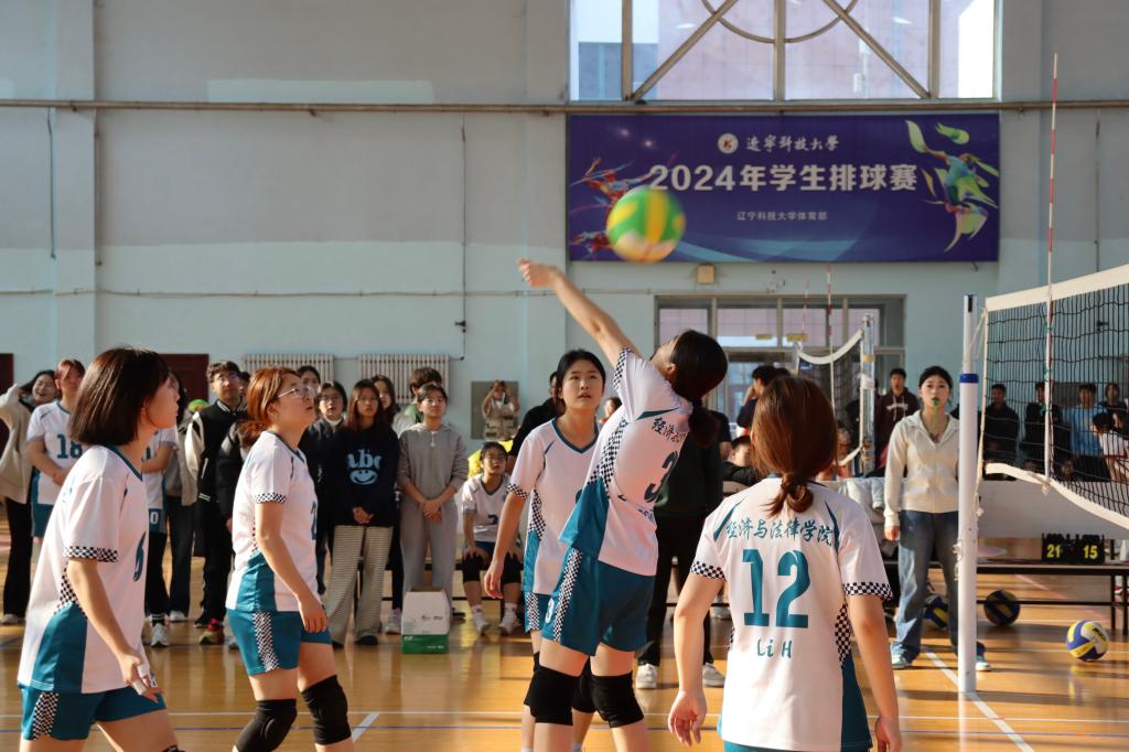 11月18日,进入决赛循环赛阶段,面对强劲对手,经法女排斗志昂扬,攻手与二传心有灵犀,进攻时二传精准传球,攻手强力扣杀;防守时队员们协同补位、灵活救球、默契拦网,共同瓦解对手多次攻势。经法女排凭借精湛球技与紧密配合在决赛循环赛中以3胜2负的成绩位列积分榜第二名,喜获亚军!
