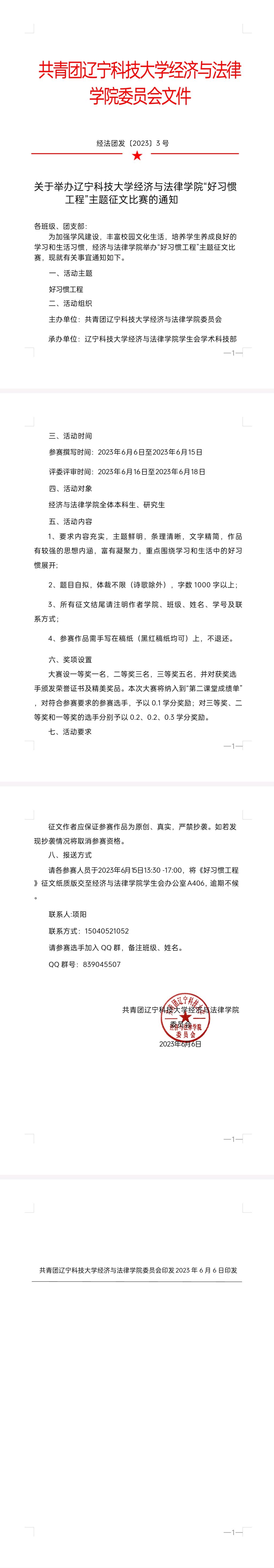 关于举办J9平台经济与法律学院“好习惯工程”主题征文比赛的通知