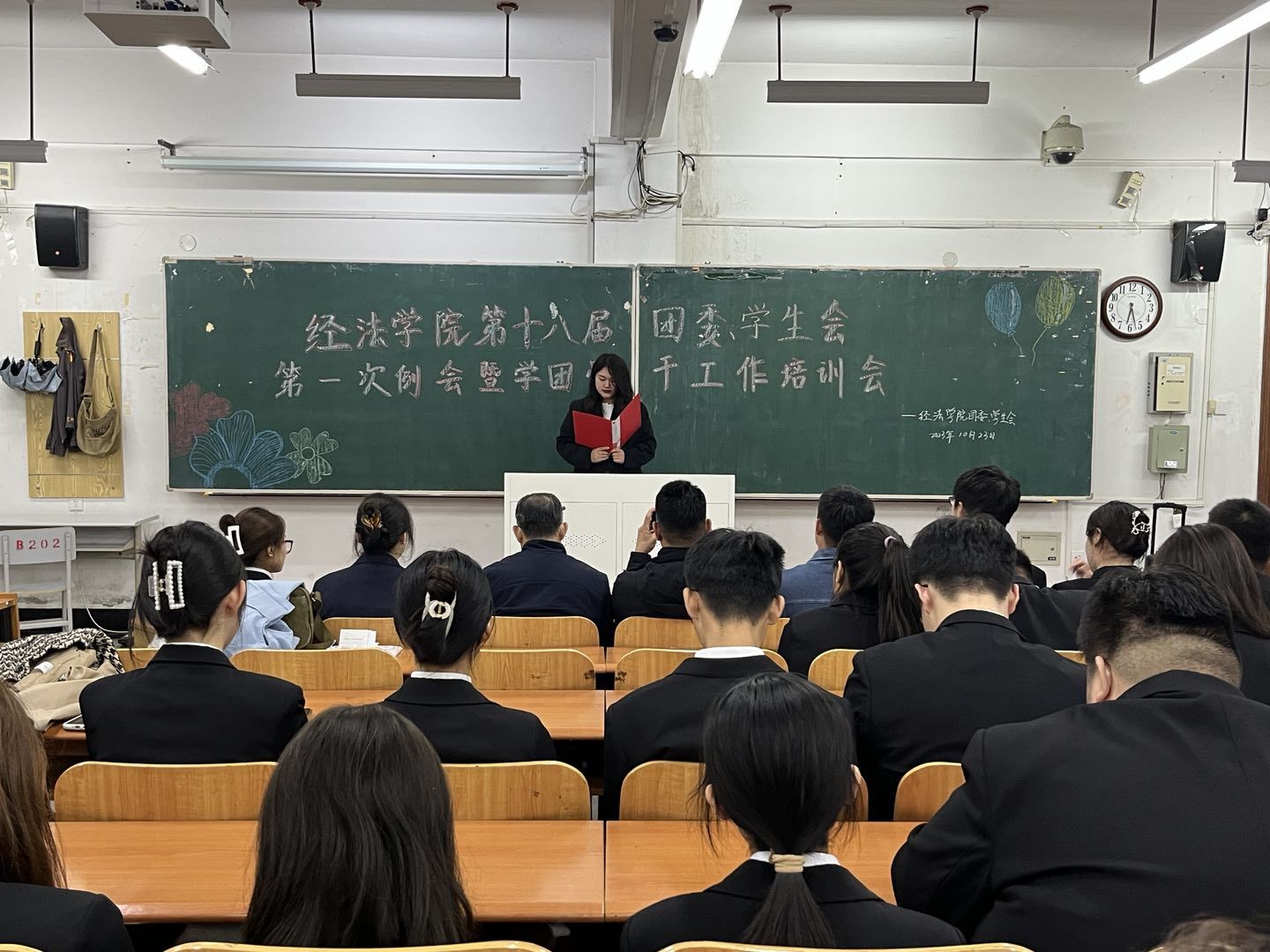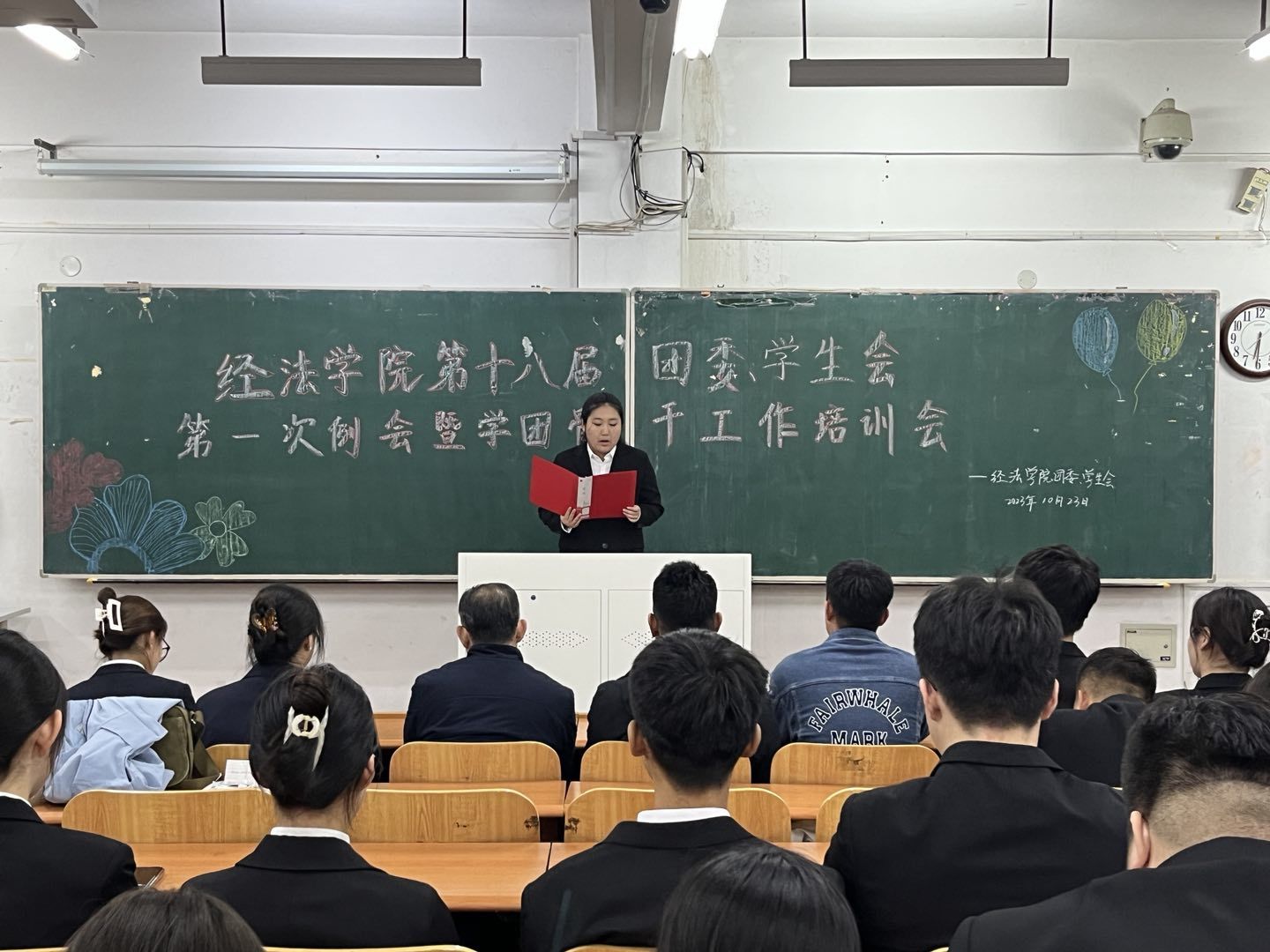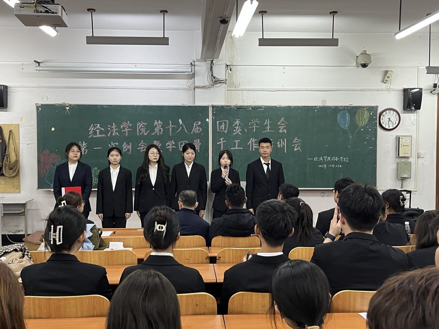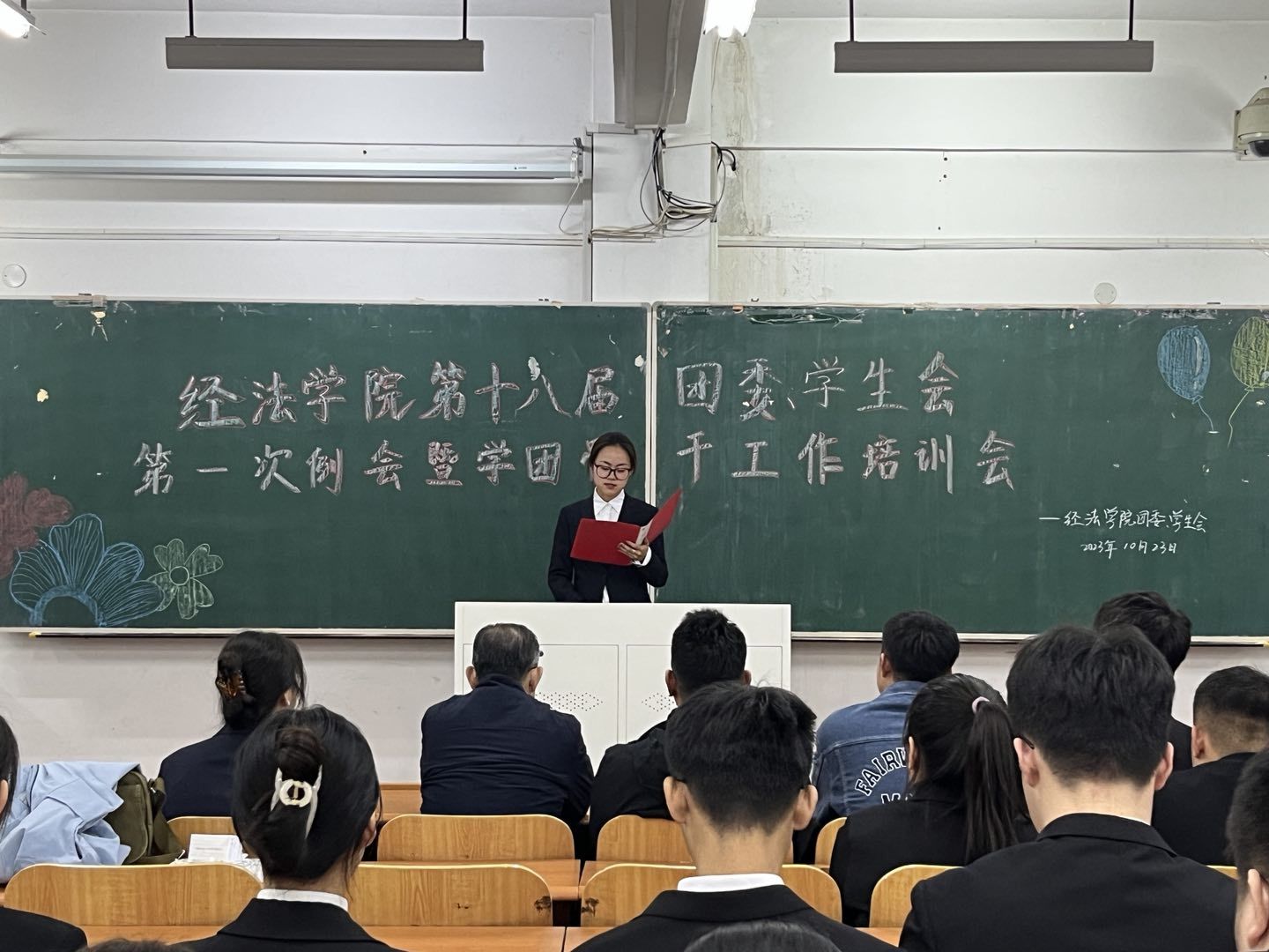 会议伊始,吴雨纯首先向大家介绍了团委、学生会的工作职能,强调了学团骨干服务同学的工作理念以及发挥的重要作用。随后,她向大家宣读了《经济与法律学院学生会工作章程》,解读了各项规章制度,对各团学骨干的行为作出了规范。