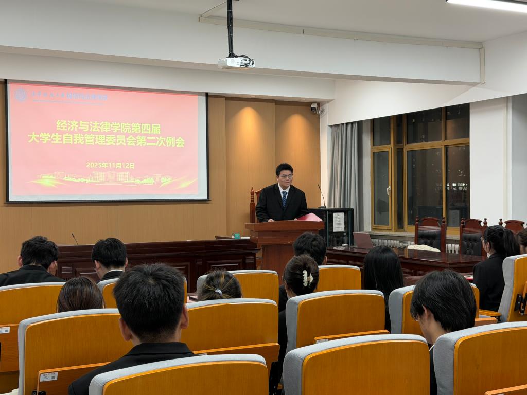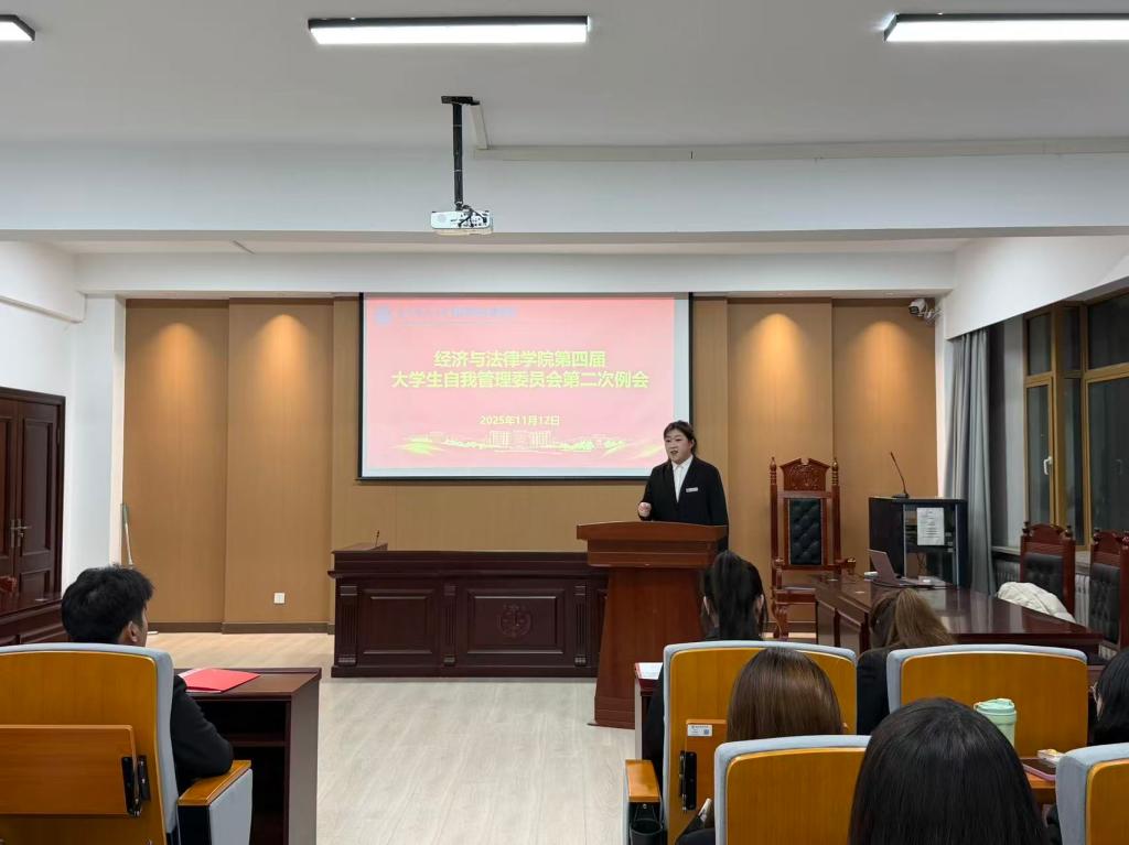 11月12日,经法学院于博识楼A402召开第四届大学生自我管理委员会(以下简称自管会)第二次例会,会议由经法学院自管会执行主席刘鑫喆主持,第四届自管会全体成员参加了本次会议。