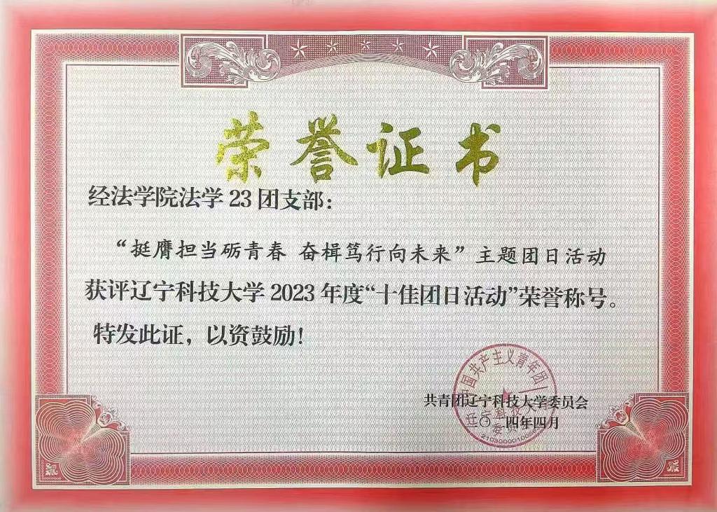 在社会实践和志愿服务方面,他一直以“有为、担当”为工作主旨,以“志愿服务”为工作抓手,带领大家将理论与实践紧密结合。他积极参与学院“小红帽”志愿服务活动,带领团员青年、法律协会成员定期深入南华街道化北社区、红岭街道中港花园社区、鞍山市“梦想之家”等地开展普法宣传活动,为社区居民在法律问题上答疑解惑,服务覆盖3000余人次。作为法律协会负责人,他多次组织参与模拟法庭系列活动。支部团员青年也在他的号召下,积极参与“返家乡”、扬帆计划、把我的大学带回母校、暑期“三下乡”等社会实践活动,真正做到了“实践育人成果好”。法学23班同时荣获J9平台2024年度“学雷锋志愿服务先进集体”。
