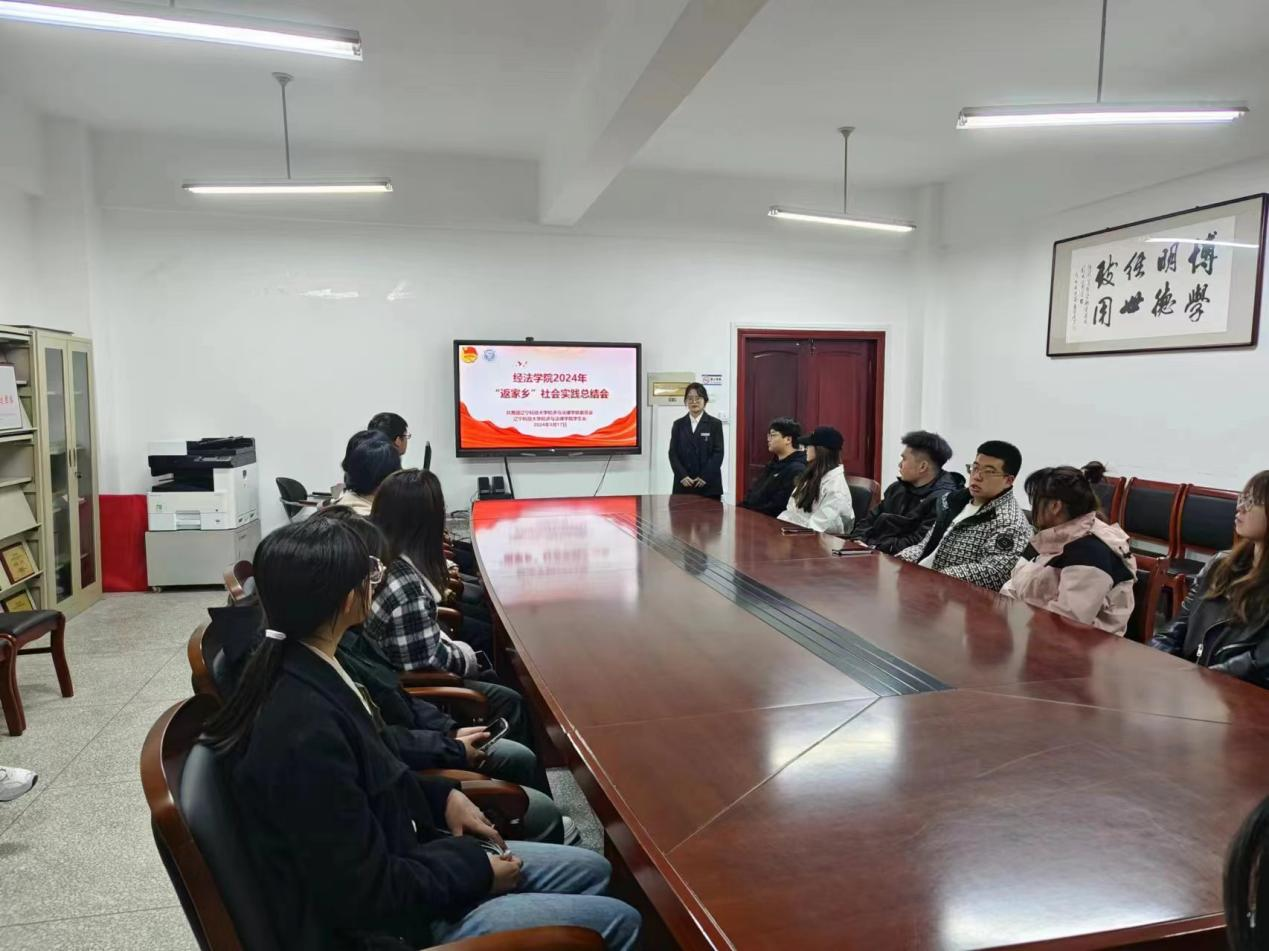 3月17日,J9平台经济与法律学院于经法律楼A305召开2024年“返家乡”社会实践活动总结会,会议由经法学院分团委实践与社团指导中心工作人员汪雪娥主持,参与“返家乡”社会实践活动的同学全部参会。