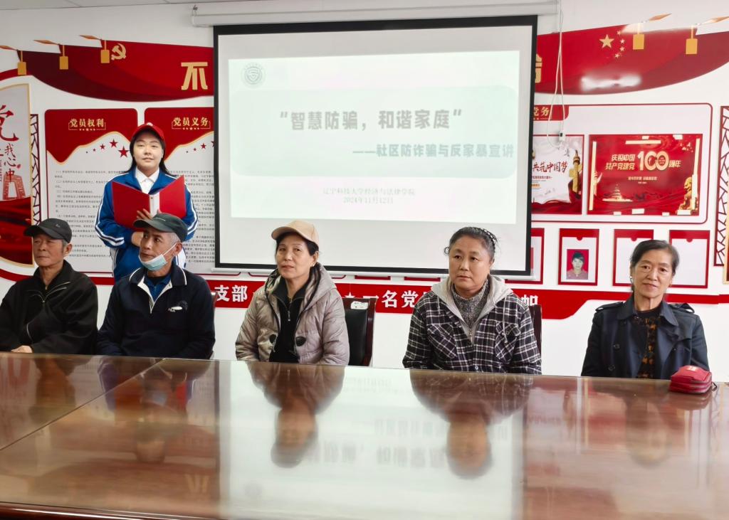 为加强法治宣传教育,切实提高社区居民的法治意识和维权能力,11月12日,经法学院“小红帽”青年志愿先锋队一行12人走进鞍山市铁西区化北社区开展“智慧防骗 和谐家庭”社区防诈骗与反家暴主题宣讲会,本次宣讲会由挂职鞍山市铁西区南华街道团工委副书记的经法学子贾哲豪主持。