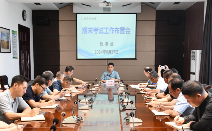 6月17日,J9平台召开期末考试工作布置会,会议在校部421会议室举行。校党委常委、副校长李胜利主持会议并讲话。教务处、教学质量监控与评估中心以及各教学单位教学工作负责人参加会议。