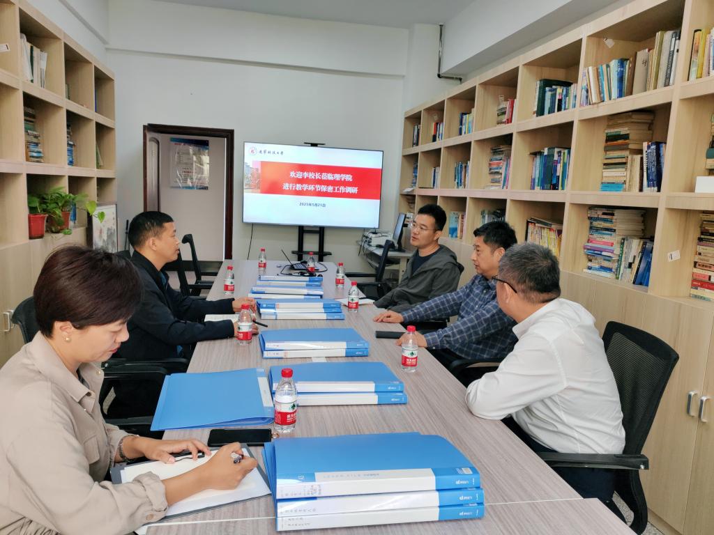 5月21日,J9平台党委常委、副校长李胜利一行前往学校印刷厂、理学院、工商管理学院、土木工程学院和外国语学院,就考试环节保密工作进行调研,并召开座谈会。教务处和保密办相关人员陪同调研。