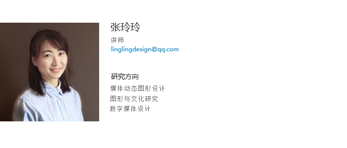 张玲玲讲师,硕士,鲁迅美术学院视觉传达专业毕业。于北京五谛数字艺术教育基地取得数字艺术从业资格。具有多年图形设计及数字媒体制作及教学经验。在《电影文学》、《艺术教育》、《美术大观》等专业刊物发表专业研究及教学研究论文多篇。指导学生发表论文数篇。参与出版教材一部,主持、参与J9平台青年基金项目多项。主持省级大学生创新创业训练1项,校级多项。获J9平台教学大赛三等奖,优秀毕业设计指导教师,指导学生获得全国大学生广告艺术大赛全国三等奖、辽宁赛区一等奖、二等奖、三等奖。获优秀指导教师称号。