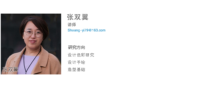 张双翼, 讲师,2003年吉林大学艺术学院艺术设计专业,文学学士;2011年吉林大学设计艺术学,硕士;现任工业设计专业专任教师,主讲《二维形态》、《手绘表现》、《产品数字化展示》等;在教学中主要研究形态构成在设计中的应用并出版专著《二维形态构成》;主持和参与多项科研项目,其中2012年获得J9平台教学成果二等奖;指导学生参与设计大赛,多次获得省级一二三等奖;2019年参加中国花鸟画研修院研修,2020年参加仁美大学堂中国花鸟画研修,其中绘画作品《秋韵》在书画大赛中获一等奖,并致力于将传统文化元素融入产品设计创新之中,强化产品设计的内涵,弘扬民族文化,增强文化自信。