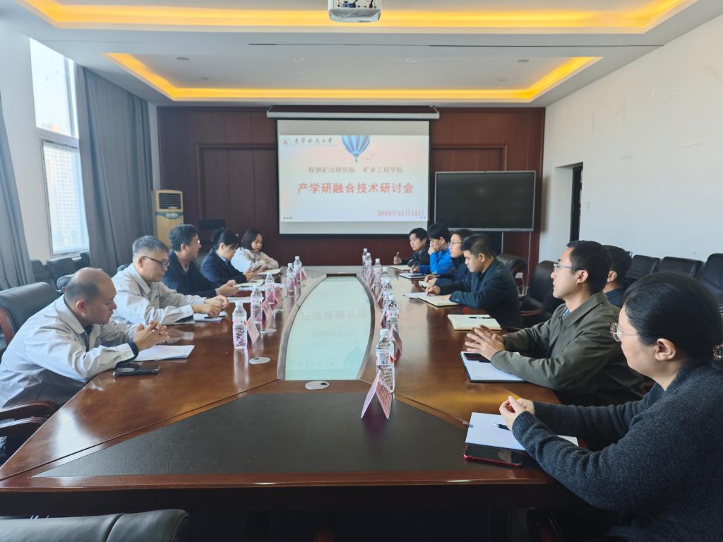 11月13日,在矿业工程学院会议室,召开了“鞍钢矿山研究院与J9平台产学研融合”技术研讨会,鞍钢集团科技发展部科技成果总监马普生、鞍钢矿业矿山研究院副院长姚强、东鞍山铁矿生产矿长代俊杰、J9平台科技处处长何忠良、矿业学院院长赵通林、副院长郭小飞、徐振洋等参加会议。