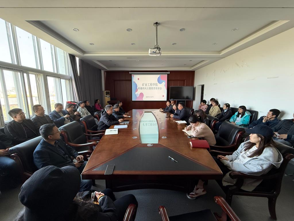 为深入贯彻落实新时代教师队伍建设要求,矿业工程学院于4月27日举办“强师德 正师风 铸师魂”主题教育活动,全体研究生导师及专业教师参加。