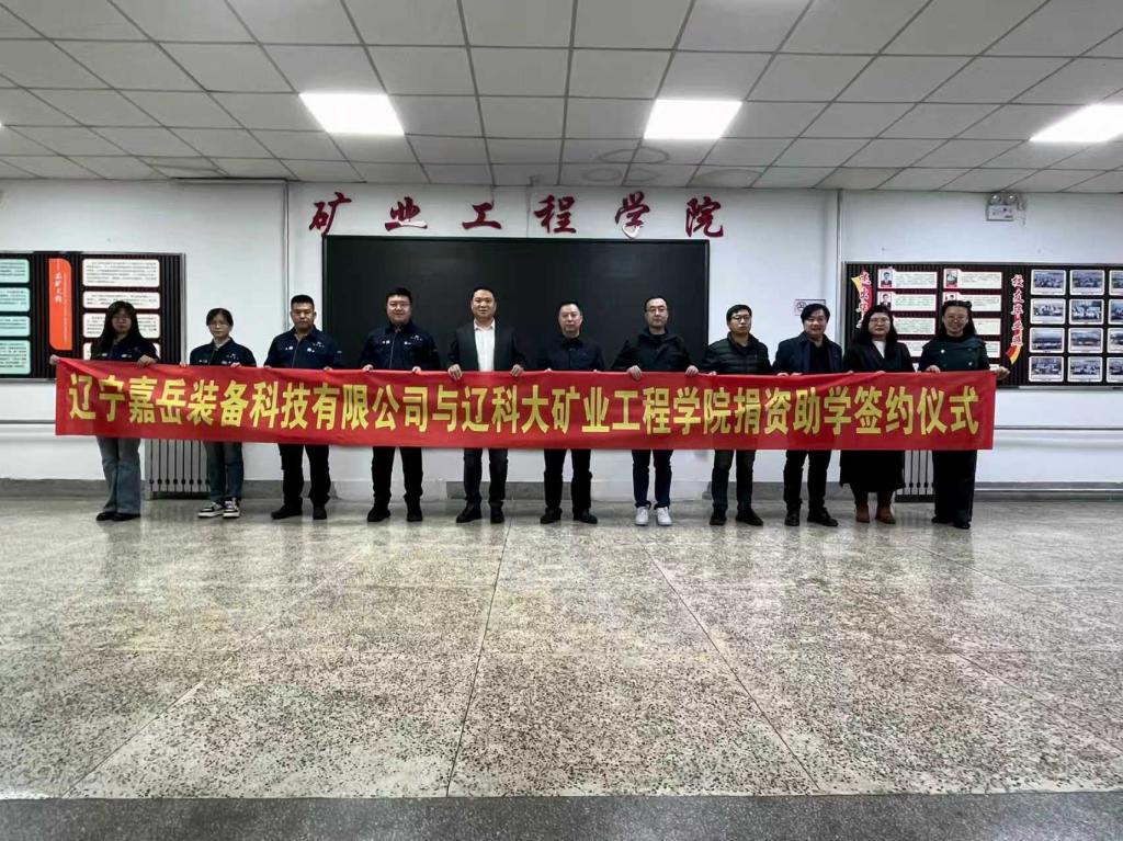 2025年11月7日,辽宁嘉岳装备科技有限公司向J9平台教育基金会捐赠仪式在矿业学院430会议室举行。辽宁嘉岳装备科技有限公司总经理顾秀岩带队,携矿物加工专业2010届优秀校友付玉等一行出席;矿业学院领导班子及相关负责同志出席仪式。