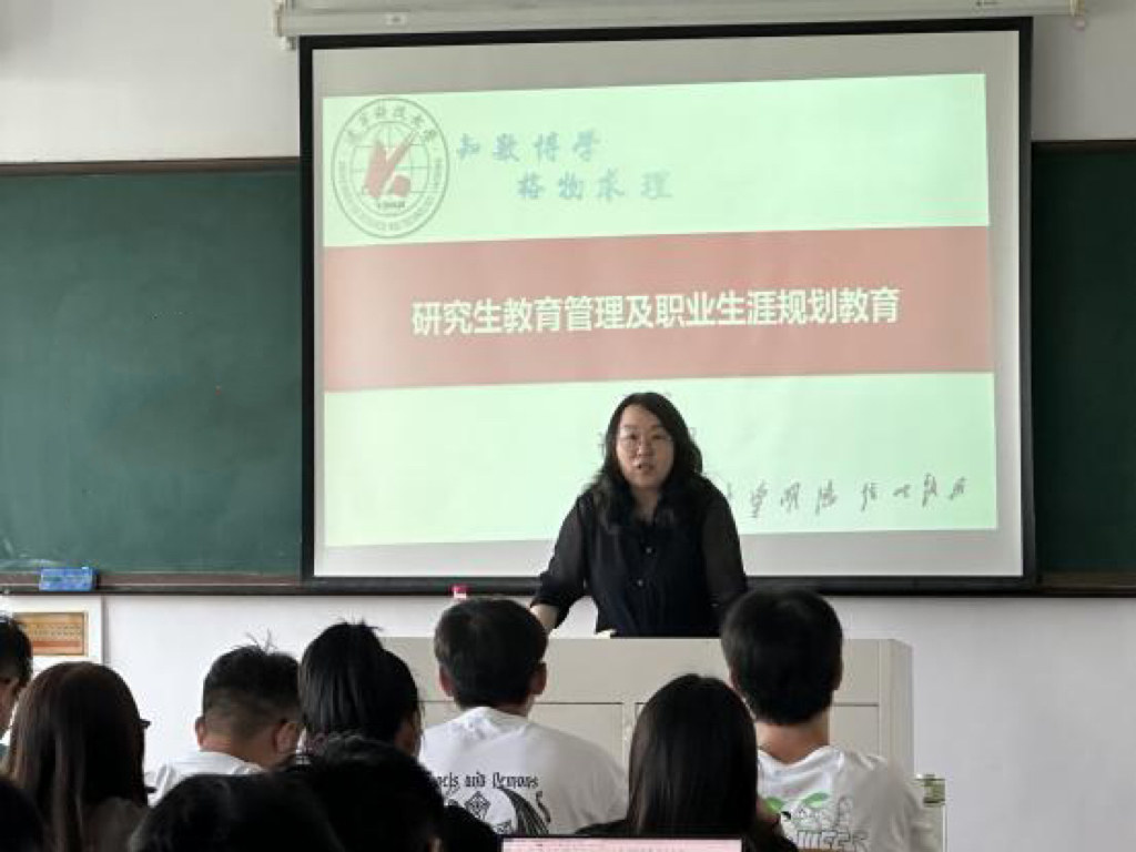 会上,张春霞书记指出研究生教育作为教育、科技和人才三大战略的重要结合点,肩负着高层次人才培养和创新创造的重要使命。张春霞以“研究生教育管理及职业生涯规划教育”为题,详细介绍了理学院研究生培养理念、毕业要求以及评奖评优相关制度,从研究生素质能力提升、学业职业指导帮助学生明确学习目标和发展方向,并对学生进行了理想信念、入党启蒙和安全教育,引导学生自觉践行社会主义核心价值观。