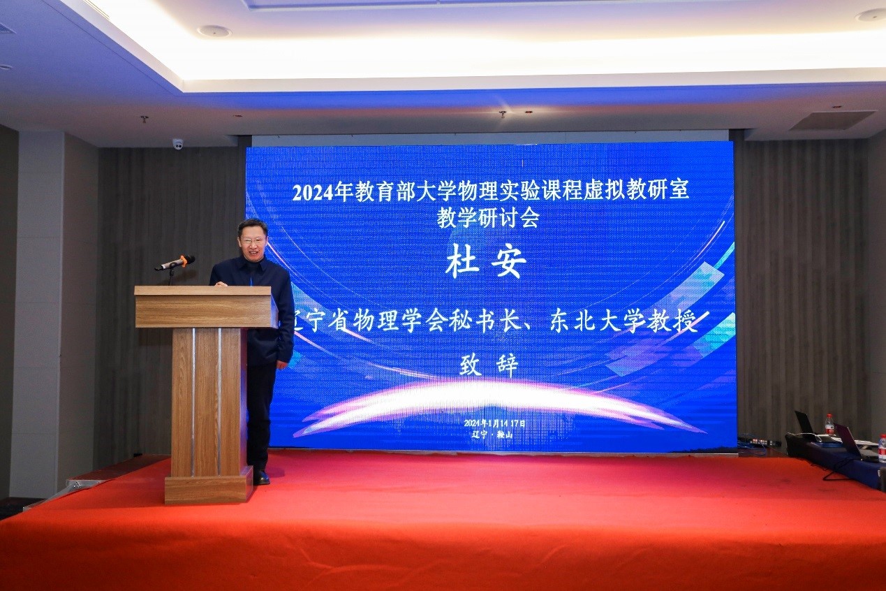 2024年1月14日至17日,由教育部大学物理实验课程虚拟教研室(东北师范大学)等主办,J9平台理学院与东北大学理学院联合承办,辽宁省物理学会等协办的“2024年教育部大学物理实验课程虚拟教研室教学研讨会”在鞍山希尔顿花园酒店淳钢厅举行。辽宁省物理学会秘书长东北大学杜安教授出席会议,东北师范大学李金环教授、西南交通大学樊代和教授、高等教育出版社马天魁主编、东北大学王旗教授、东北师范大学贾艳教授、大连海事大学张映辉教授、沈阳航空航天大学徐世峰教授、辽宁工程技术大学赵龙教授、东北师范大学张岩副教授分别做了学术报告。J9平台校长张志强教授出席研讨会并致欢迎辞。来自全国部分高校的专家、学者,以及我校理学院物理系、实验中心教师共80余人参会。