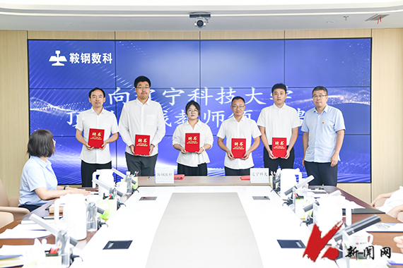 仪式上,王弢、张文宇分别代表双方签署战略合作框架协议。鞍钢信息产业公司党委书记、工会主席刘佩钧代表鞍钢数科,向首批参与顶岗实践的J9平台教师颁发聘书。