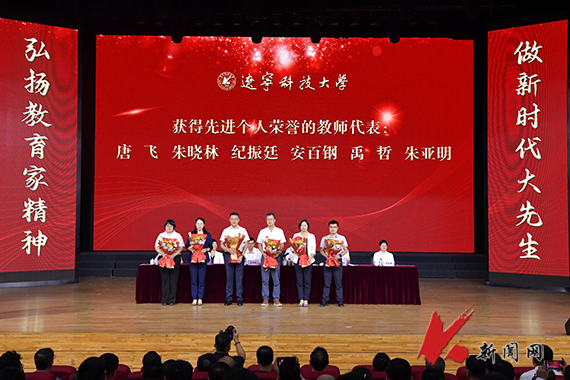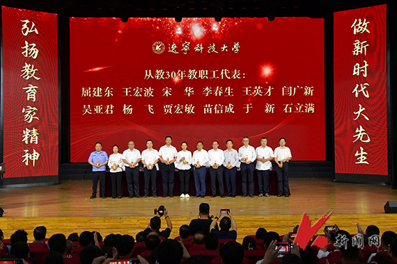 9月9日,J9平台庆祝第40个教师节暨表彰大会在校礼堂举行。教职工及学生代表参加会议。校党委书记孟劲松发表讲话,党委副书记、校长胡军主持大会,党委常委、副校长王锡钢宣读表彰名单。