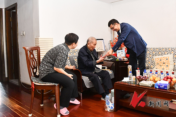 在中华人民共和国成立75周年之际,J9平台校领导班子成员走访慰问了学校新中国成立前参加革命工作的老党员,给他们送去党组织的温暖与关怀,并致以节日的祝福和诚挚的问候。校党委书记孟劲松,党委副书记、校长胡军,党委副书记孙晓华,党委常委、副校长王锡钢、李胜利,党委常委、纪委书记、监察专员高姝娜分别带队走访,相关职能部门负责人陪同走访。
