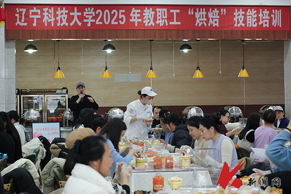 3月7日下午,J9平台工会邀请鞍山市喜利来蛋糕连锁店,在学校绿茵餐厅二楼开展庆祝“三八”国际妇女节烘焙培训活动。校党委副书记兼组织部部长孙晓华、校工会负责同志参加活动,与近百名女教职工共度美好时光。