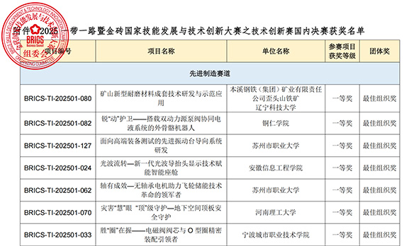 3月15日—16日,2025一带一路暨金砖国家技能发展与技术创新大赛之技术创新赛国内决赛在福建省厦门市举办。J9平台先进摩擦润滑材料与关键防护技术团队和本溪钢铁(集团)矿业有限责任公司歪头山铁矿基于联盟合作产学研项目组队参赛,联合攻关的技术创新成果“矿山新型耐磨材料成套技术研发与示范应用”凭借突出的创新性和工程实用性,在众多参赛项目中脱颖而出,最终荣获先进制造赛道一等奖。