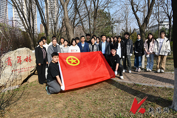 校领导与师生代表合影留念,并在青年林共同栽种了象征火红青春的海棠树。